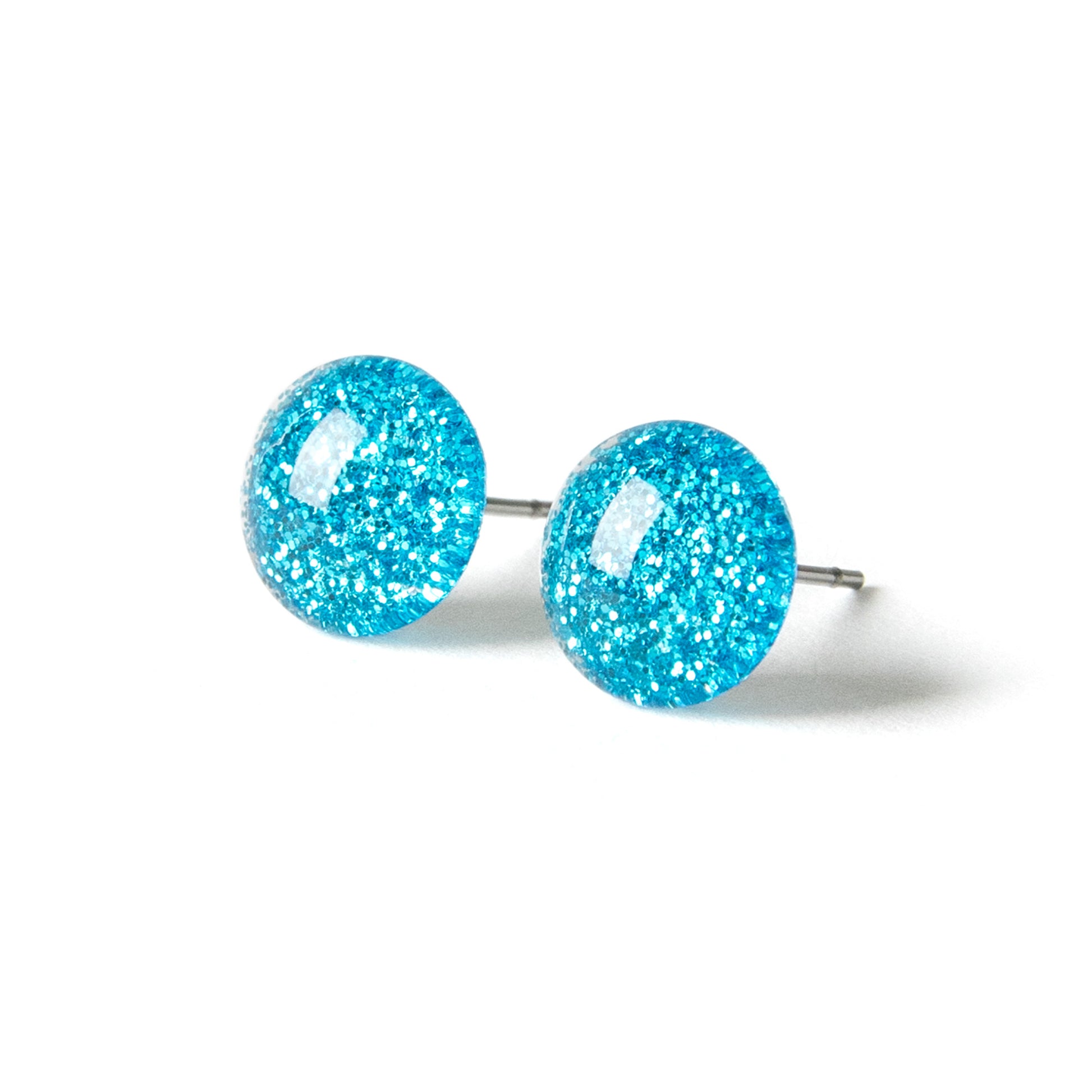 Color Dot Stud Earrings in Blue Glitter