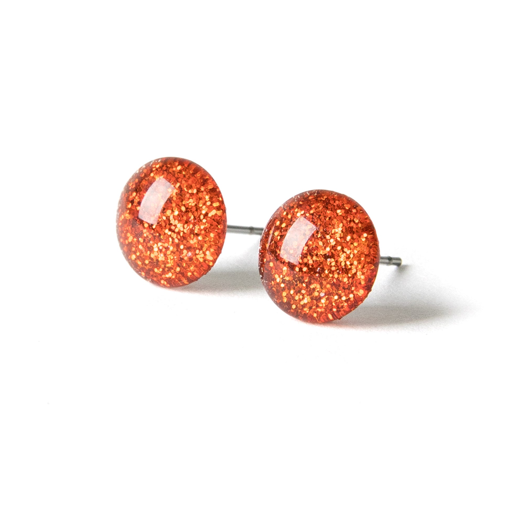 Color Dot Stud Earrings in Red Glitter
