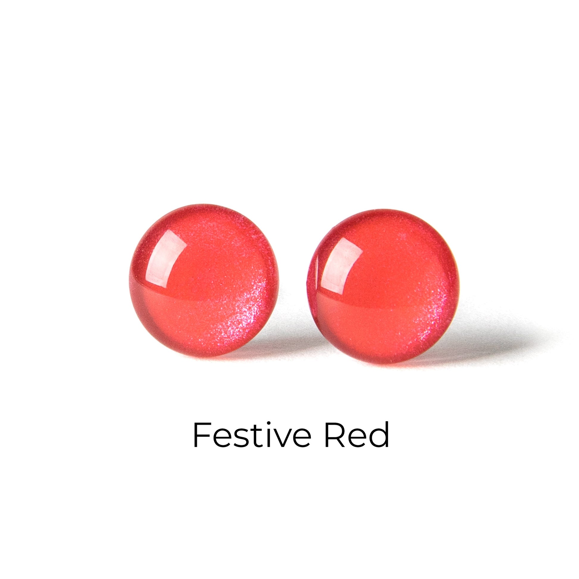 Color Dot Stud Earrings in Red Shimmer