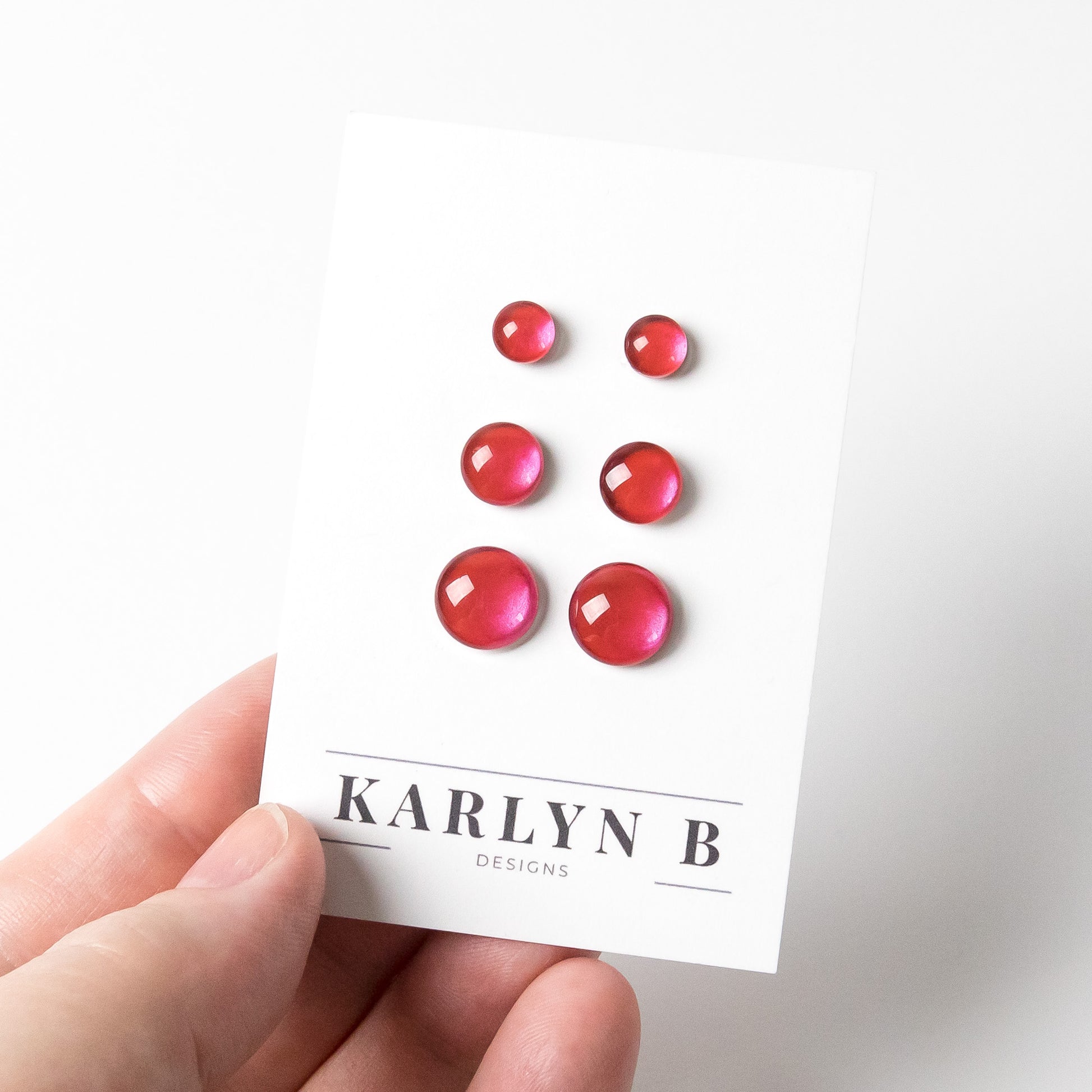 Color Dot Stud Earrings in Red Shimmer